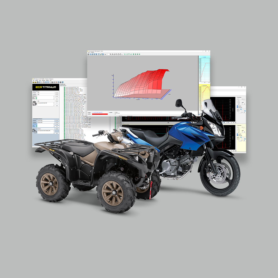 Enhance the tuning service in your workshop by generating customized files, not only for motorcycles but for all vehicle categories and even for TCUs. Customize the vehicles entering your workshop with professionalism and efficiency with just a few clicks.